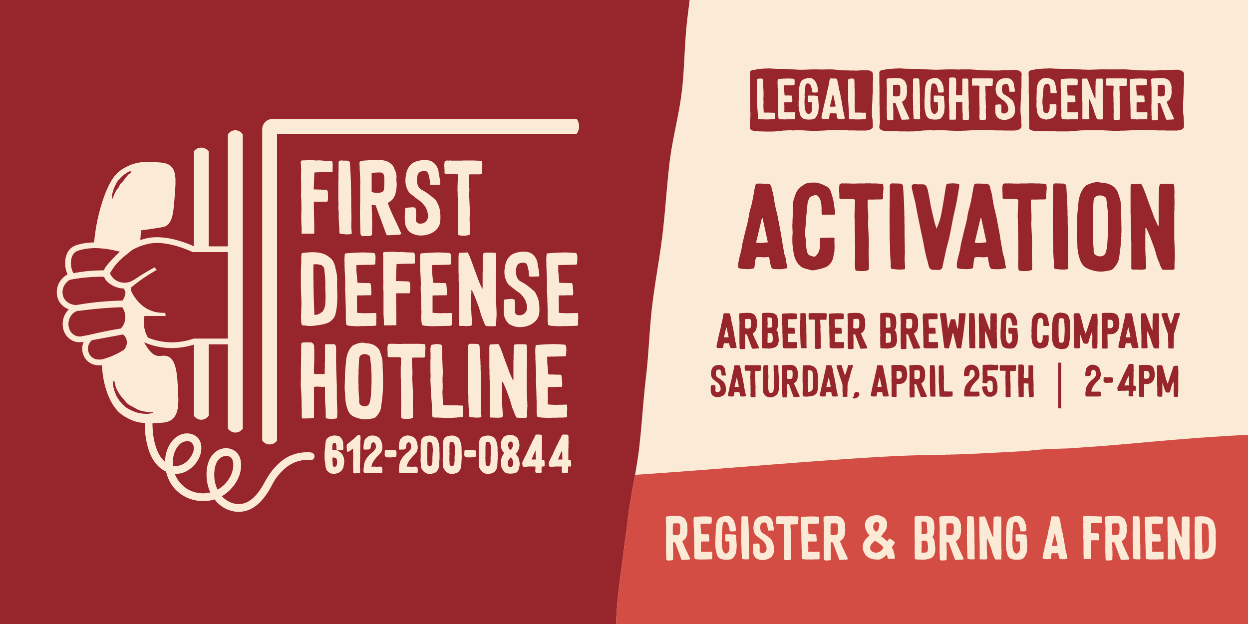 On January 1st, LRC launched the First Defense Hotline – the first of its kind program in Minnesota to provide free, high quality, early-stage representation to community members immediately following arrest. Join us on Saturday April 25th at Arbeiter Brewing Company for this Activation as we build support and momentum behind the First Defense Hotline! This event is free to attend and open to all who are invested in the work of the hotline – neighbors, frontline workers, organizers, attorneys, law students, and community leaders. Register below and bring a friend!