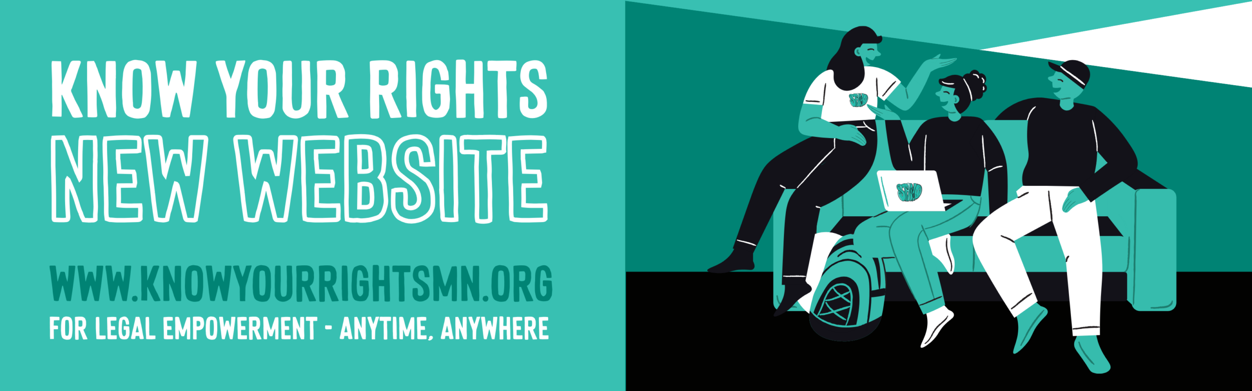 Do you need to learn more about your rights right now? We’ve got you covered! Visit www.knowyourrightsmn.org for legal empowerment – anytime anywhere.
